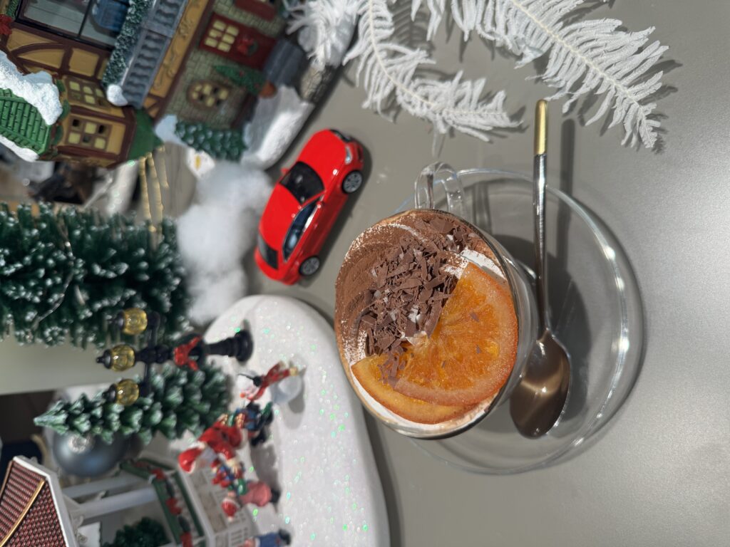 トップのドライオレンジとチョコレートのアクセントもかわいらしく、ほっとする時間のお供にぴったりな一杯です🍊🧡