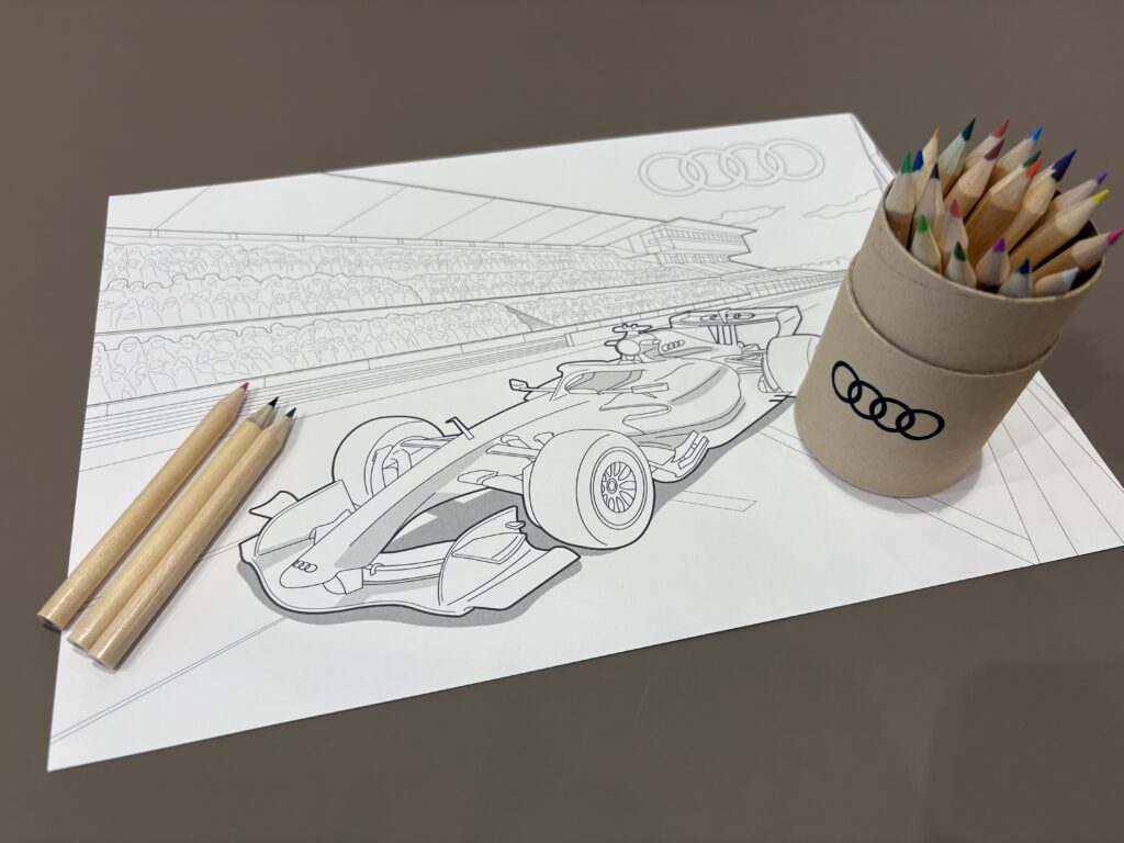 キッズコーナーにAudi  F1の塗り絵もご用意しております🎨🖌️